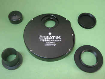 ATIK製社製は各カメラ機種対応(Atik-11000は除く)の手動式の「フィルターホイール(31.7mm径×5穴)」です。